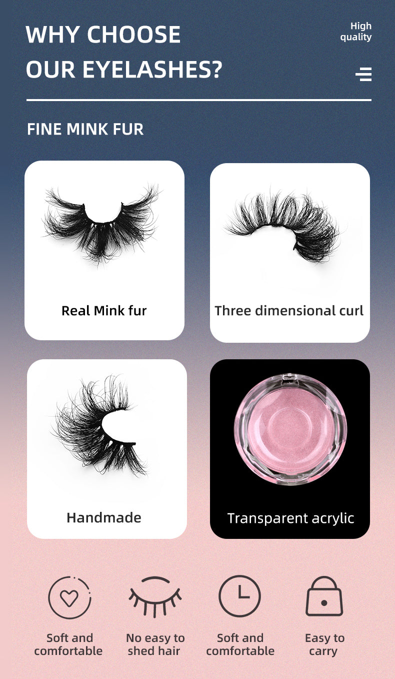 A collection of cruelty-free false lashes made from artificial cultivated mink’s natural falling hair.